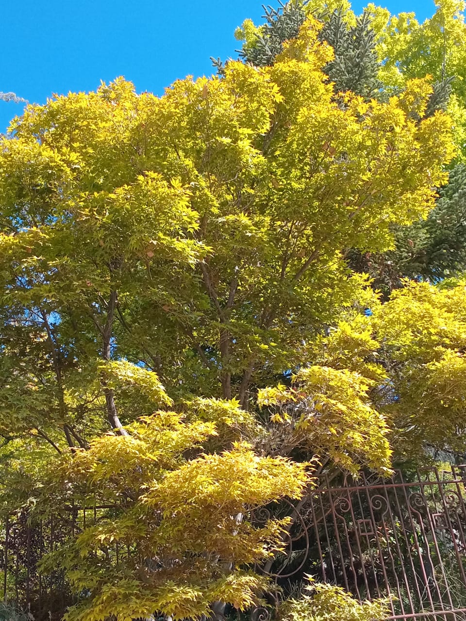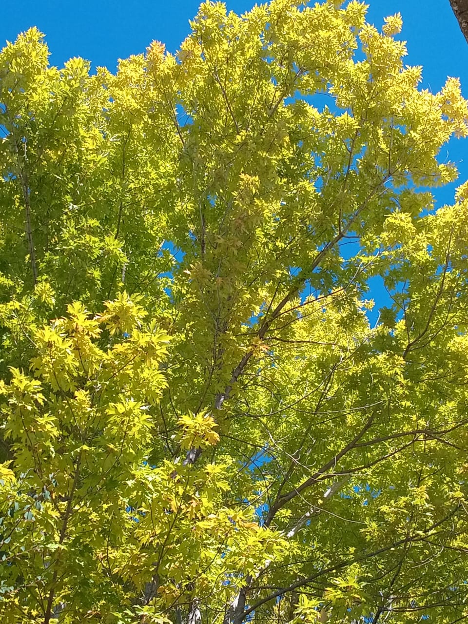 ولا تلبث الأشجار أن تكتسب بريق الكرنفالات بضيائها الزاهي، وخليط أصباغها، وبمروحة أشكال أوراقها المختلفة، اختلاف البصمات والأيدي، في رحلتها السنويّة التي لن تتعدّى الأسابيع ما بين الأخضر والأصفر، البنيّ والخردليّ، النبيذيّ والقرمزيّ. بين النضارة واليباس. بين مواصلة عناقها للشمس، أو الذهاب لمراقصة العصافير في الفضاء الأزرق، قبل أن تتلاشى، ويكفّنها التراب .