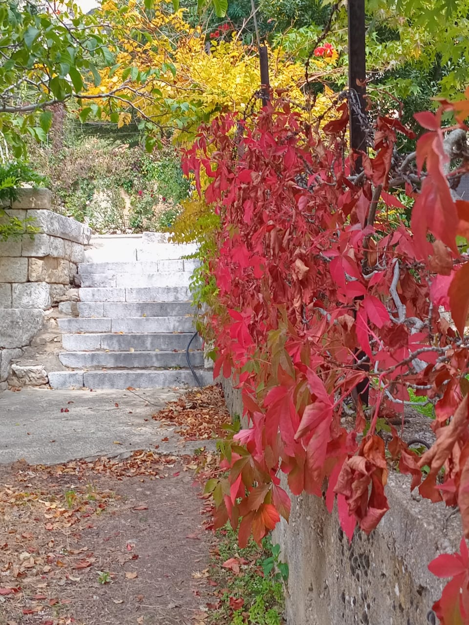 قد تكون أوراق النبات المتسلّق على حيطان وشبابيك الأديرة، وأسوار البيوت، أوّل ما يعمل فيه فرشاته، قبل أن يوزّع جهوده، ماشيًا من شجرة إلى شجرة، ويعطينا نحن الشعور بأنّنا ننتقل من عمل فنيّ وضع لمساته الأخيرة عليه، إلى آخر .