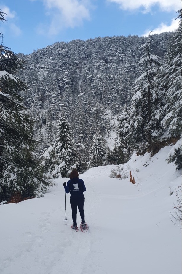 وتضيف "في فصل الشتاء تختفي معالم الدروب التي يسلكها الزوار، لذلك يقوم فريق العمل في المحمية بتحديد المسارات الآمنة وتعليمها، ووضع أشرطة حمراء لتبقى ظاهرة أمام الزوار، تفاديًا لضياع الطريق أو التعرّض لأي حادث. كما نحرص على إعطاء الإرشادات اللازمة بشأن نوعية اللباس المناسب، والتأكّد من حالة الطرقات، وغيرها من التفاصيل عند الحجز، لممارسة هذه الرياضة واستئجار أحذية الثلج (الراكيت).