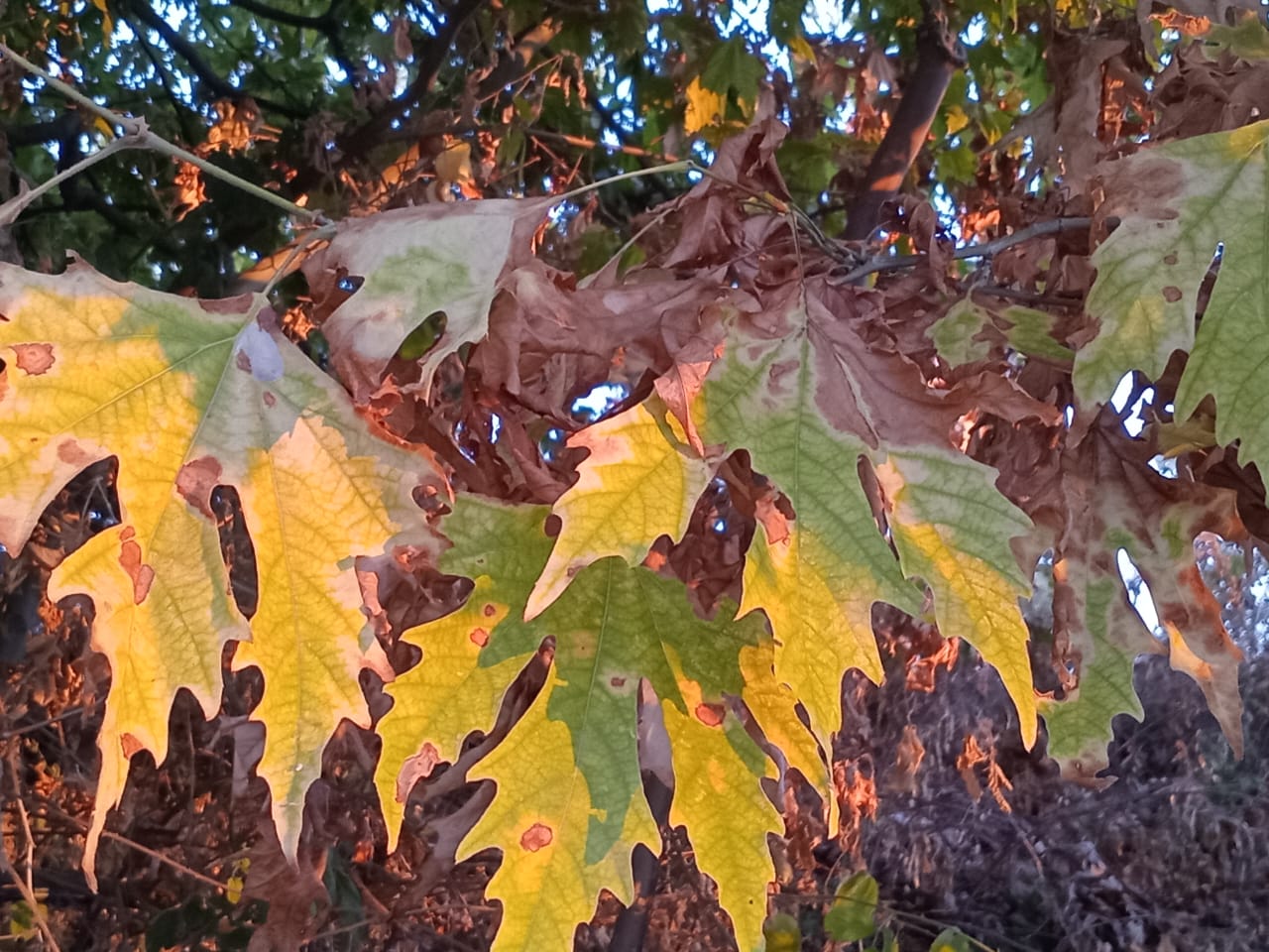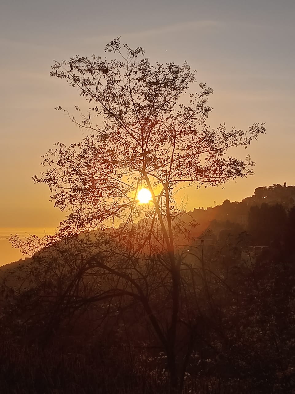 ولا يبلغ الشوق إلى ما يبهج العين أشدّه إلّا متى مالت الشمس إلى المغيب، ووضعتها الشجرة على خصرها، دالقة الأصباغ على أشجار الدلب المحاذية، والعرائش، صفراء ذهبيّة، فبرتقاليّة محمّرة. في مشهد دائم التحوّل، مطلق للخيال. مشهد متى كان مجلّلًا بغلالة من الضباب يعطيك الانطباع، وأنت تراه، بأنّه خرج للتو من فردوس خارج الزمن، ويتداخل مع حياتك التي تعيش. فتقولها شجرة مجد الغروب.