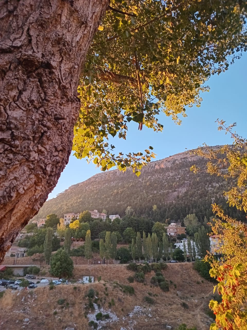 وعندما أرخي لحالي العنان في المشي، أكاد لا أصدّق متى أبلغها، وألتقط لها صورًا. ولولا الحياء لكنت اطلب من أوّل من يجاريني مشيًا على الدرب، أن يصوّرني معها، وقربها. وأستعيد في ذهني كيف كان الإنسان القديم يقدّس بعض الأشجار ، لاعتقاده بأنّها ترفع الآلام، وتشفي الأمراض. وأكاد، في صيفها المولّي، أعانق جذعها الممسوح عليه بكدسات الخزامى المحتلّة الرصيف، بدلًا من أقدام العابرين، والناشرة أطيابها على كامل القامات الخضراء المطلّة على البيوت، والأديرة. على الفنادق، والجبال.