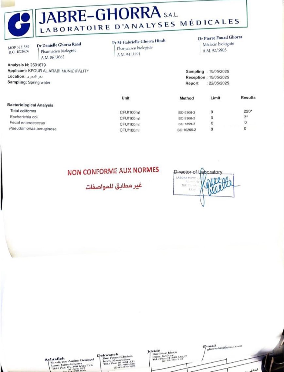 هذا التباين بين تجربة الأهالي اليوميّة ونتائج الفحوصات لا يقتصر على كفور العربي وحدها. فبالنسبة إلى السكان، تُقاس سلامة المياه بما عاشوه فعليًا، لا بما يُكتب في تقرير. سنوات طويلة من الشرب من المصدر نفسه، من دون تسجيل حالات صحية خطيرة، تتحوّل إلى دليل كافٍ، في نظرهم، لمواصلة الاستعمال. في المقابل، تنطلق المقاربة البلديّة من معايير مختلفة، تقوم على الفحص العلمي والوقاية، حتى في غياب أعراض واضحة.