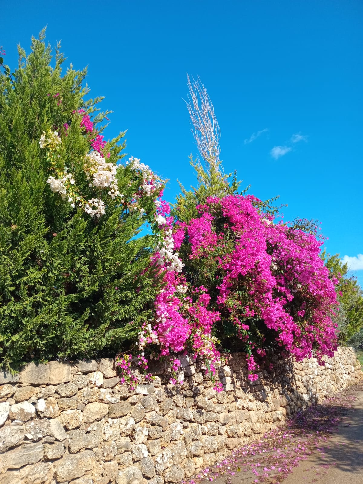 وتحت ضوء الشمس الساطع لا تستطيع أن تخفي انبهارك، وأنت توجّه بصرك إليها متوّجة باب مدخل، أو متدليّة عن درابزين سور، أو طالعة عند كتف جدول. ترتاح إلى كل تدفئه الشمس في غمرة هذا البرد القارس. ويغمرك الإحساس، بعد وقوع عينك على الأزهار المشبعة حاجتك للألوان، بأنك أفلت من الكآبة قليلًا بسفر عينيك في ما يشعّ، ويتوهّج، مدخلًا البهجة على رتابة حياتك الشتويّة تحت المظلّة وأنت تجتاز الأرصفة، فيما المطر يتهاطل .